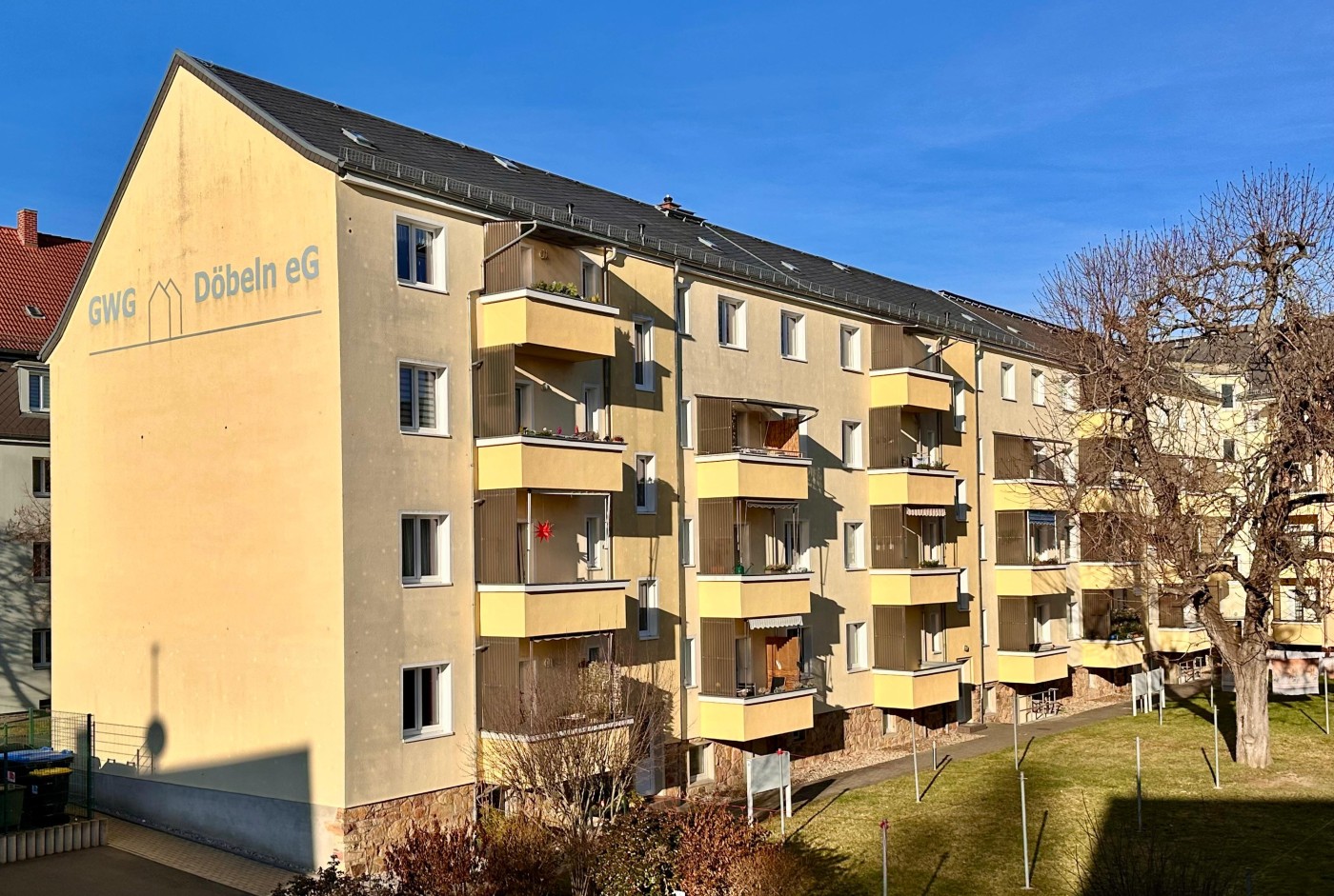 Ein zentrumsnahes aber ruhiges wohnen . Schöner Innenhof und Balkone an allen Wohnungen Parkmöglichkeiten sind vorhanden.